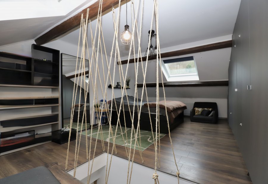Les combles aménagés forment une seconde chambre offrant +/-28 m² au sol (+/-14 m² habitables), pouvant également convenir comme bureau ou espace polyvalent.